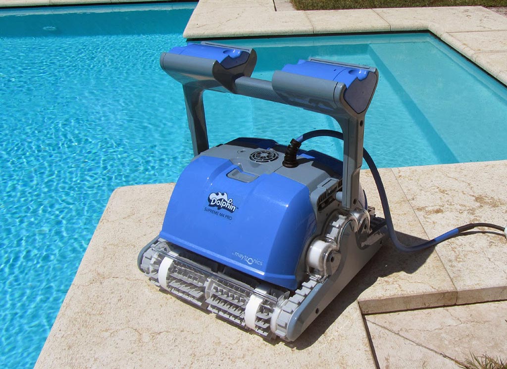 Sali verso una nuova esperienza con il Dolphin M400, robot pulitore di piscine che si arrampica sulle pareti. Raccomandato per piscine fino ai 12 m di lunghezza.
