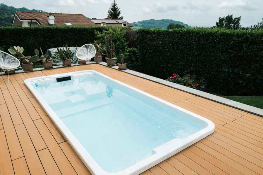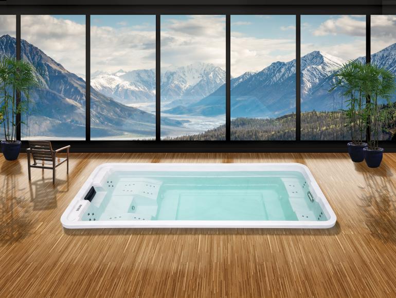 Le sue dimensioni compatte facilitano la sua integrazione ed installazione all’esterno come all’interno, pur mantenendo i vantaggi di una piscina tradizionale.